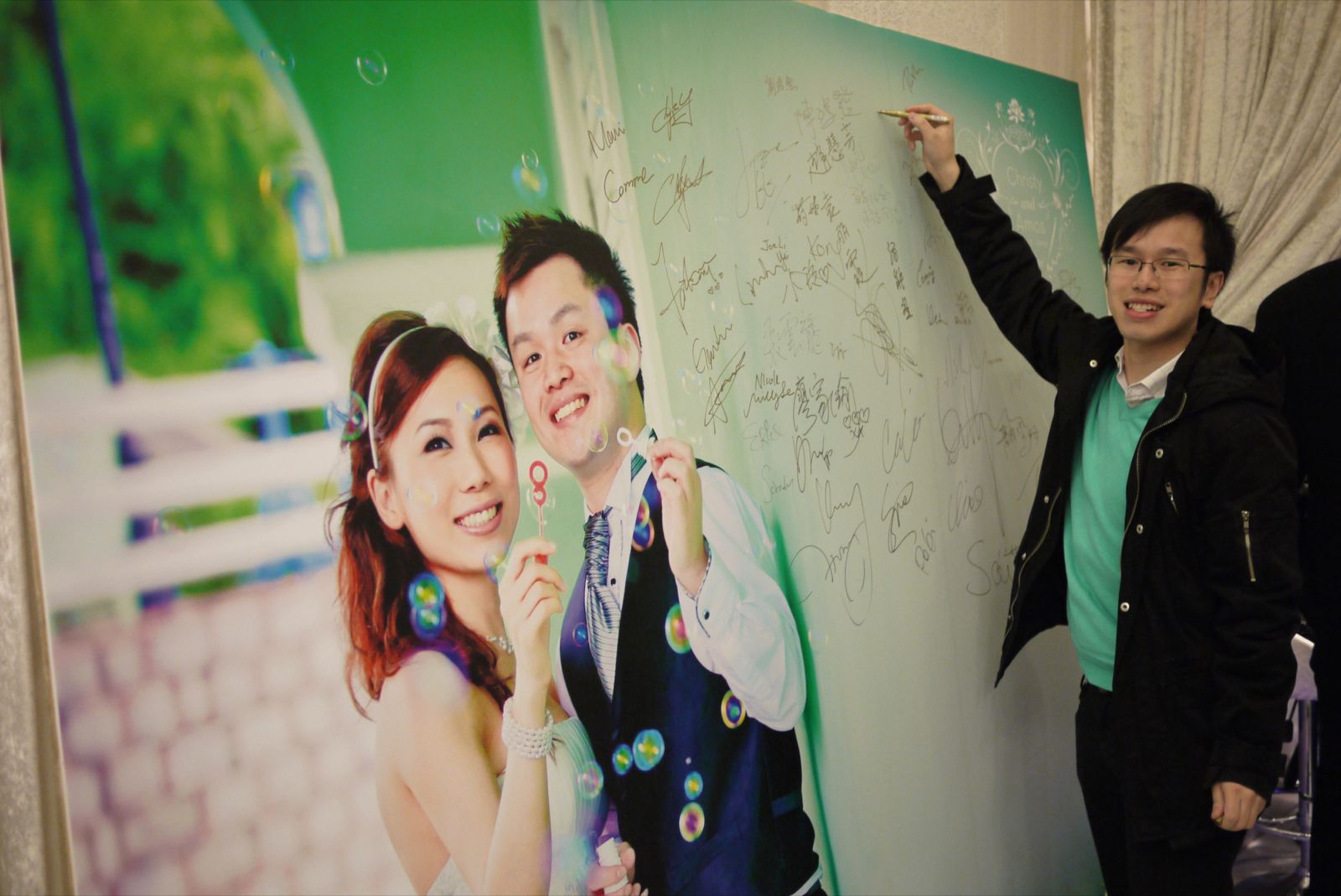 之後我仲有出席佢地嘅婚禮,喺自己影張相度簽個名。